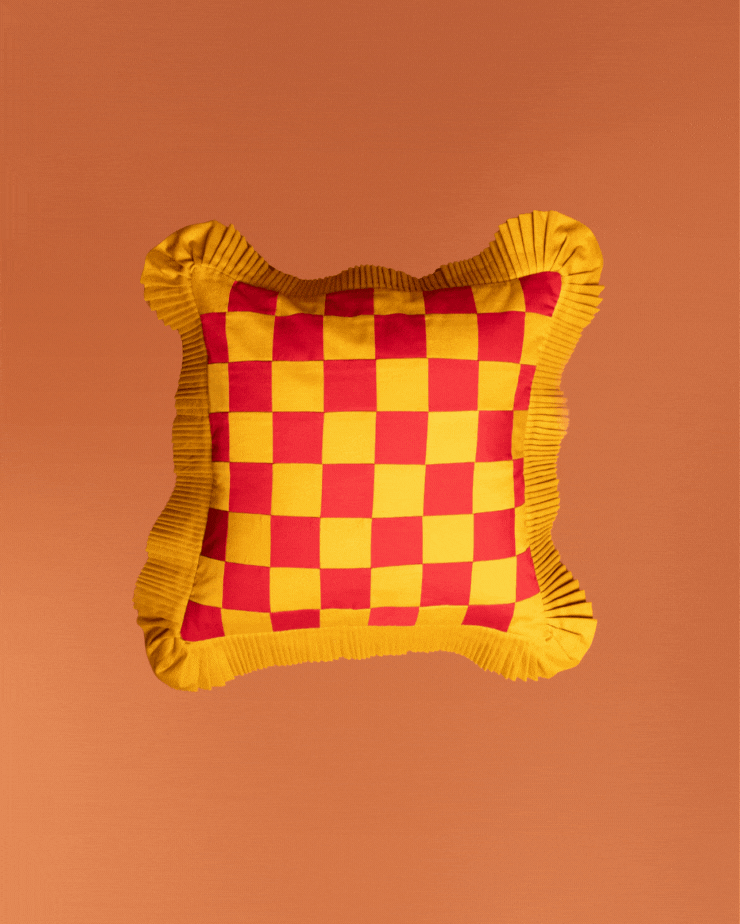 Crafted using a patchwork of fabric squares and finished with a pleated ruffle, this cushion is full of character and charm. The bold red and yellow palette - reminiscent of the quintessential Maggi ketchup bottles - brings a playful pop of colour to your space, perfect for brightening sofas, beds and cosy corners alike.
